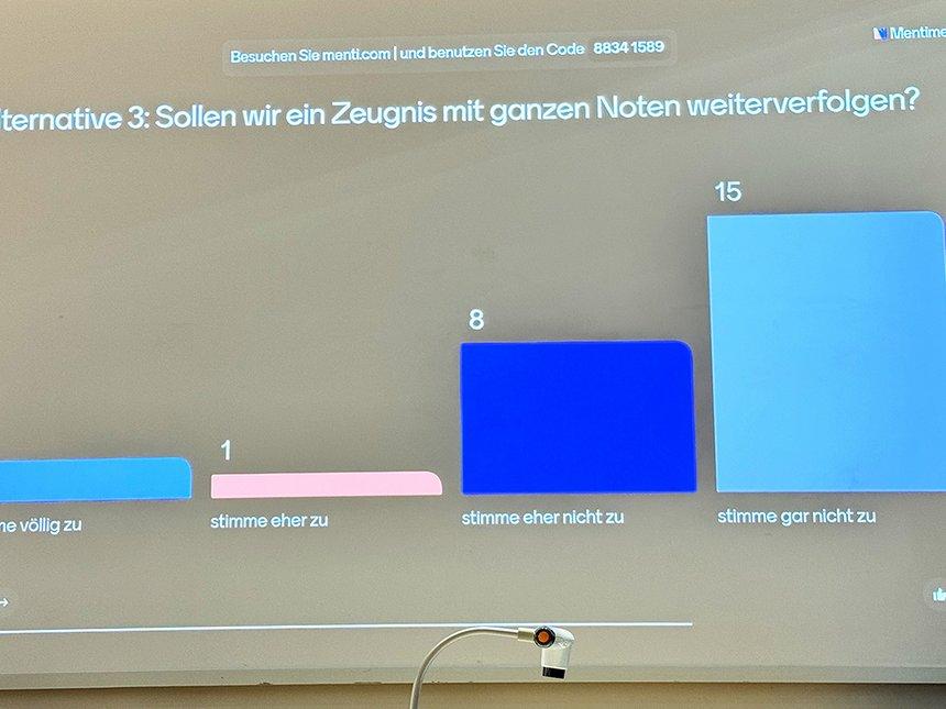 Seit Jahrzehnten wird mit der Skala 1 bis 6 benotet, darunter können sich alle etwas vorstellen. Was ist der Nachteil von Noten? Es gibt keine Vergleichbarkeit.