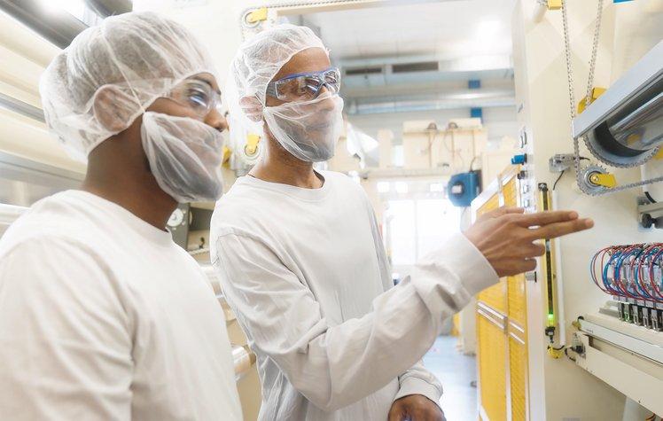 Solomon Brhane (rechts) hat letzten Sommer die Lehre zum Anlagenführer EFZ bei Perlen Packaging erfolgreich abgeschlossen. Heute ist er stellvertretender Teamleiter und bildet selber Lernende aus. (Bild zvg)